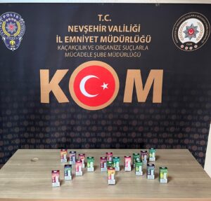 “ Nevşehir Emniyet Müdürlüğü Kaçakçılık ve Organize Suçlarla Mücadele Şube Müdürlüğü ekiplerince son bir hafta içerisinde yapılan 3 çalışmada, 3.800 adet doldurulmuş makaron, 100 paket kaçak sigara, 19 adet elektronik sigara ele geçirilmiş, 3 şahıs hakkında gerekli işlemler yapılmıştır.