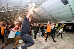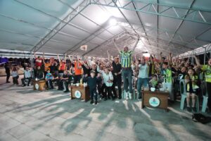 Kapadokya Kültür ve Sanat Merkezi önünde maçın bitişi ile birlikte büyük bir heyecan yaşayan taraftarlar şampiyonluğu kutlarken Belediye Başkanı Rasim Arı için de tezahüratlarda bulundu.
