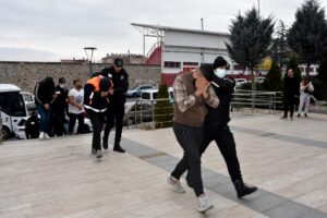 Sosyal medya hesapları üzerinden sahte “kiralık bungalov” ilanlarıyla dolandırıcılık yapanların yakalanmasına yönelik Nevşehir Cumhuriyet Başsavcılığının talimatı doğrultusunda Nevşehir merkezli 9 ilde düzenlenen eş zamanlı operasyonda yakalanarak gözaltına alınan 19 şüpheli, Nevşehir Emniyet Müdürlüğü’ndeki sorgulamalarının ardından Nevşehir Adliye Sarayına sevk edildi.