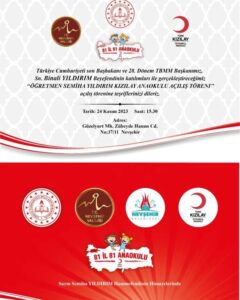 NEVŞEHİR(TRENDHABER)- Güzelyurt Mahallesindeki Mahmut- Dudu Yazıcı  Anadolu Lisesi’nin yanında yapımı Türk Kızılayı tarafından tamamlanan Öğretmen Semiha Yıldırım Kızılay Ana Okulu, 24 Kasım 2023 Cuma günü gerçekleştirilecek. Türkiye Cumhuriyeti’nin son Başbakanı Binali Yıldırım ile okula adını verilen öğretmen eşi Semiha Yıldırım’ın açılışına birlikte katılacağı eğitim yuvasının açılış saati de 15.30 olarak belirlendi.