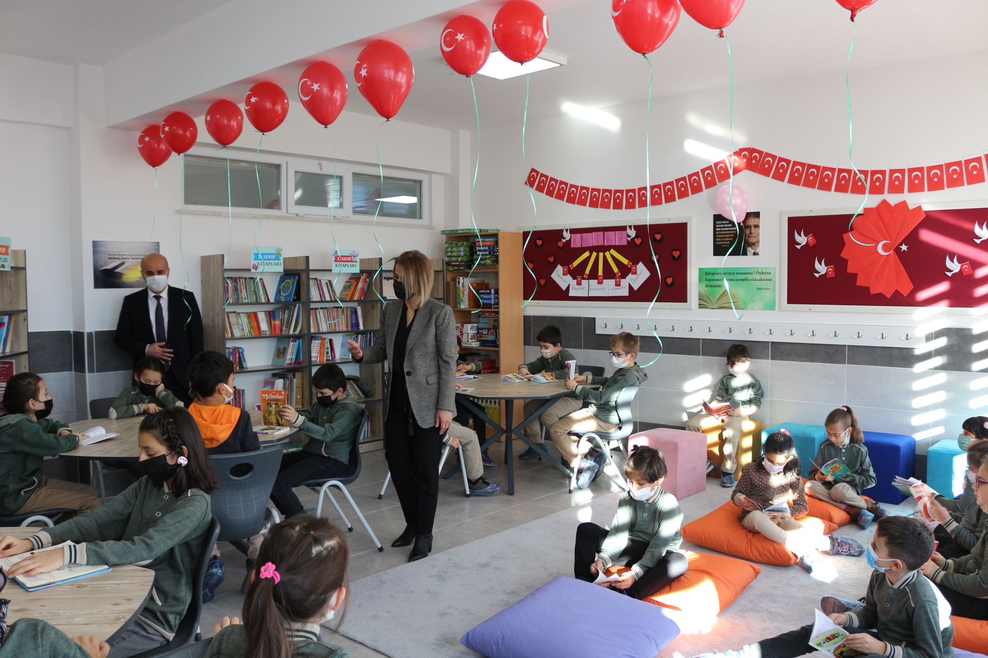 Vali Becel, İl Millî Eğitim Müdürü Polat ile birlikte Mehmet Gülen İlkokulunda “Kütüphanesiz Okul Kalmayacak” projesi kapsamında kurulan kütüphanenin açılışını gerçekleştirdi.