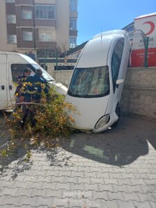 Nevşehir’in Cevher Dudayev Mahallesinde H.U. isimli şahısın kullandığı otomobil, direksiyon hakimiyetini yitirince bir evin bahçesine düştü.