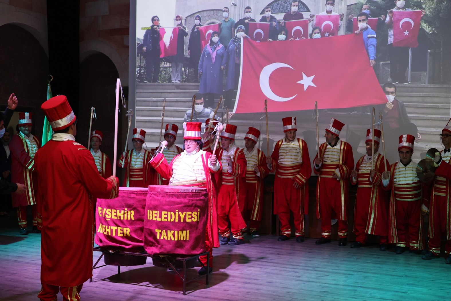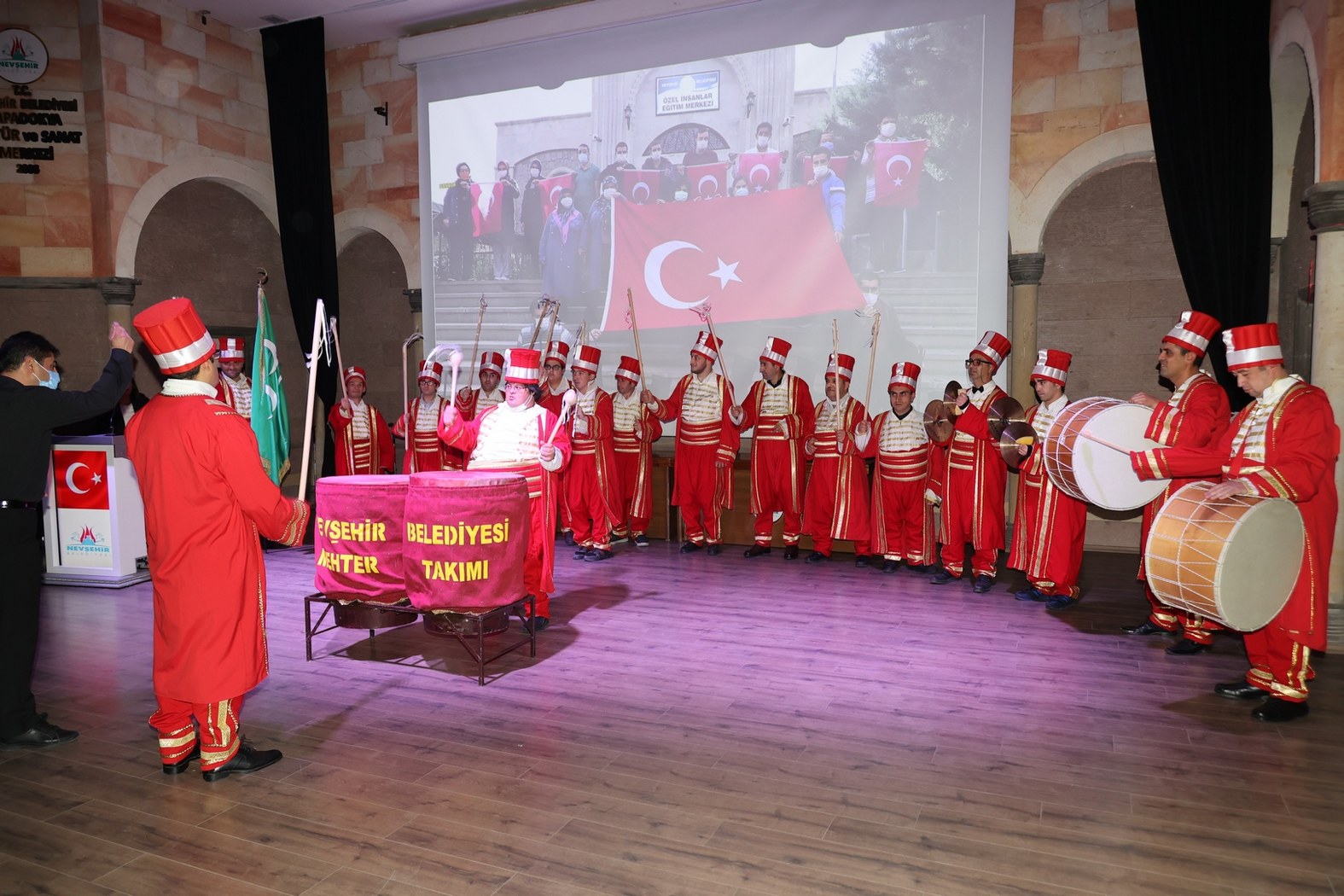 Programın başında sahneye çıkan 18 öğrenciden oluşturulan Özel İnsanlar Eğitim Merkezi Mehter ekibi kahramanlık marşları eşliğinde gösteri sundu.