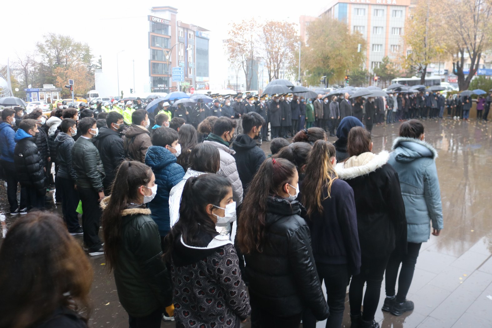 Anma etkinliğinde daha sonra Gazi Mustafa Kemal Atatürk’ün öldüğü saat olan 09.05’de, iki dakika süre ile sirenler çaldı ve saygı duruşunda bulunuldu.Bu arada Milli İrade Caddesi,Milli İrade Bulvarı ve Ali Dirikoç Bulvarındaki vatandaşların ve araç sürücülerinin de ,saygı duruşuna eşlik ettiği gözlendi