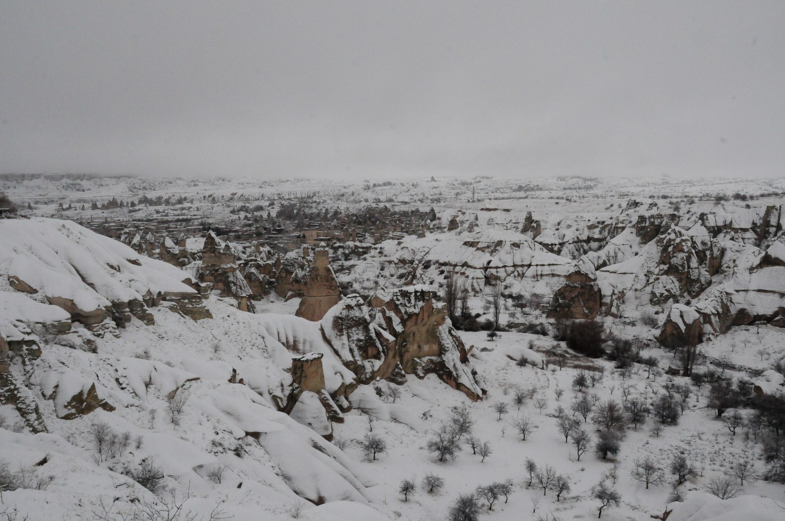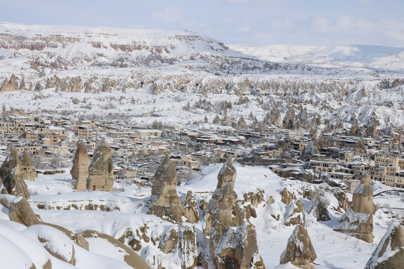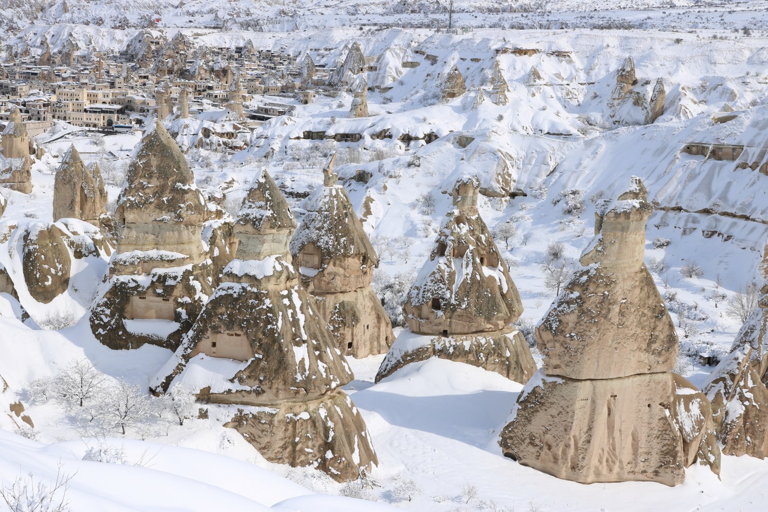 Göreme başta olmak üzere Ürgüp,Zelve-Paşabağları, Çavuşin ve Uçhisar gibi en yoğun yerli ve yabancı ziyaretçi trafiğine sahne olan merkezleri ziyaret eden yerli ve yabancı turist grupları,bembeyaz görüntüler içerisindeki peribacalarını doyasıya izlemenin keyfini yaşadılar.