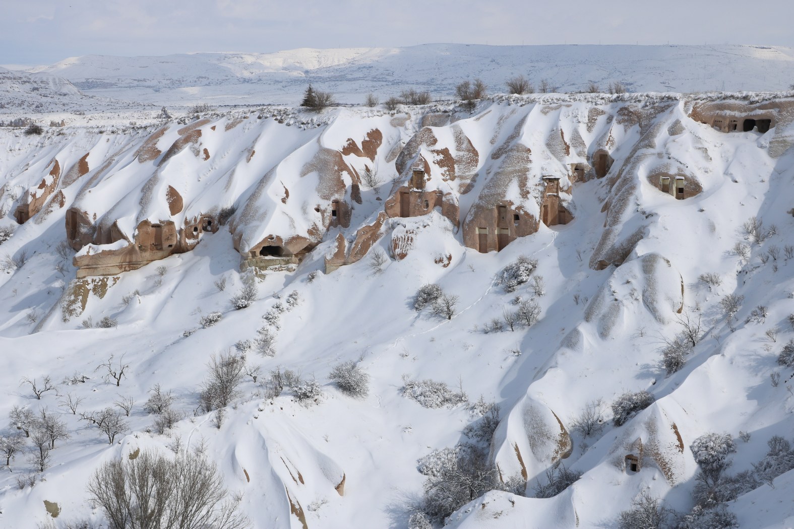 NEVŞEHİR(TRENDHABER)-Türkiye’nin  en gözde turizm merkezlerinden biri olan Kapadokya bölgesi, mevsimin ilk karı ile birlikte adeta  beyaz örtü ile kaplandı.
