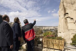 NEVŞEHİR(TRENDHABER)- Kapadokya Alan Başkanı Aydın Cem Aslanbay, AFAD Başkan Yardımcısı Hamza Taşdelen ve Deprem ve Risk Azaltma Genel Müdürü Prof. Dr. Orhan Tatar ile bölgeye yönelik yerinde incelemelerde bulundu.