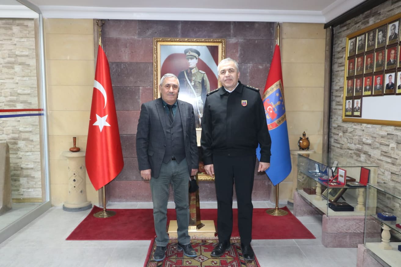 Güzelyurt Mahalle muhtarı Halit Yüncü ile birlikte  Nevşehir İl Jandarma Komutanı Jandarma Kıdemli Albay Bahittin Murat Yakın’ı makamında ziyaret eden ressam Gülhan Kartal, yaptığı karakalem ve seramik çalışmasını İl Jandarma Komutanı Yakın’a takdim etti.