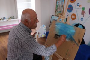 NEVŞEHİR(TRENDHABER)- Asrın felaketi Kahramanmaraş merkezli depremlerden sonra Nevşehir’e yerleşen depremzede Ressam şair Mustafa Hamiş, sanat hayatını Nevşehir Halk Eğitim Merkezi’ndeki çalışma ofisinde sürdürüyor.