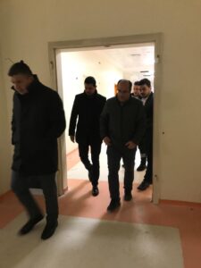 Nevşehir İl Sağlık Müdürü Op. Dr. Hasan Tartar, Kamu Hastaneleri Hizmetleri Başkanı Op. Dr. Nevzat Atılkan, Başkan Yardımcısı Dr. Tarık Akbaş’la birlikte Kozaklı İlçesinde, yapımı son aşamada olan, 30 Yataklı Kozaklı Devlet Hastan de incelemelerde bulundu, yüklenici firma sahibinden son durumu hakkında bilgi aldı, hastane binasını gezdi, hastaneye yeni alınan ve kurulumu yapılacak olan cihazları yerinde inceledi.