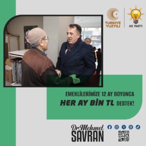 NEVŞEHİR(TRENDHABER)- AK Parti Nevşehir Belediye Başkan Adayı Dr. Mehmet Savran, emeklilere 12 ay boyunca her ay düzenli olarak Bin TL destek sağlayacaklarını açıkladı.
