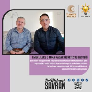 NEVŞEHİR(TRENDHABER)- AK Parti Nevşehir Belediye Başkan Adayı Dr. Mehmet Savran, 1 Nisan tarihinden itibaren Nevşehir’de yaşayan emekli vatandaşların evlerinde kullanacakları ilk 5 tonluk içme suyu bedelinin faturalarına yansıtılmayacağını açıkladı.