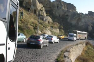 Acaba diyorum halen trafiğe açık olan alanın , Göreme Açık Hava Müzesi’ nin devamı niteliğindeki yerin hemen altında ve her gün binlerce ağır ve normal tonajlı araçların geçtiği alanın hemen altında 5-6 kilise veya kaya yerleşiminin gerçekte bulunması, PERİBACALARININ KORUNMASI İLKESİNDEN HAREKET ETTİĞİNİ İFADE EDEN İNSANLARIMIZDA NASIL BİR RUHİ HALİYET ORTAYA KOYUYOR. ? Her an motorlu araçların vibrasyonuna maruz kalınca NORMAL olan PERİBACASI HASSASİYETİ neden bugünlerde PERİBACALARI SEVİCİSİ MUHTEREMLERCE HİÇ AMA HİÇ ELE ALINAMIYOR? . YOKSA BU SEVGİ KAÇAK BİR SEVGİ Mİ ? diye düşünmüyor da değiliz hani.