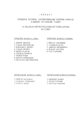 Toplantıda TÜFAV heyeti tarafından Türkiye Futbol Antrenörleri Derneği Nevşehir Şube Başkanı Kenan Gerçeker’in yönetim kurulu üyeliğine seçildi.