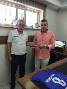 Başkan Gerçeker, TFF-TÜFAD işbirliğinde Nevşehir’de açılan UEFA.C. Futbol antrenör kursuna verdiği maddi manevi desteklerinden dolayı iş insanı Grand Öztürk Hotel sahibi Gökay Öztürk’ü ziyaret ederek hediye takdiminde bulundu.