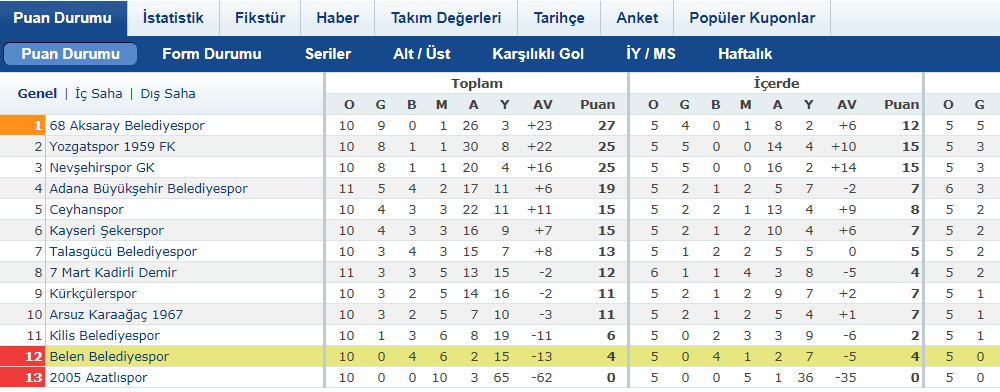 Türkiye bölgesel amatör lig grup 5 puan durumu