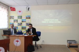 Bakan Danışmanları Doç. Dr. Sait Muharrem Say ve Doç. Dr. İhsan Kuloğlu tarafından 2023 Türkiye Yüzyılında Tarım ve Orman Vizyonu Çalışma Programı hakkında bilgilendirme yapıldı.