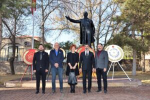 Ürgüp Hükümet Konağı önündeki Atatürk Anıtına ilçe Kaymakamı Ömer Coşkun ile birlikte çelenk koyan Ürgüp Belediye Başkanı Ali Ertuğrul Bul; “10 Kasım Resmi Törenleri. Atamızı kaybedeli 87 yıl oldu. Fikirleri ilelebet yaşayacaktır” ifadesinde bulundu.