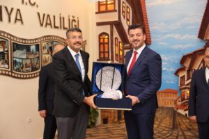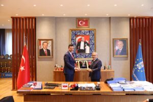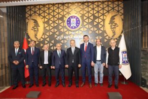 Bursa Büyükşehir Belediye Başkanı ve Türkiye Sağlıklı Kentler Birliği Başkanı Alinur Aktaş başkanlığındaki Encümen üyeleri, Kütahya Valisi Ali Çelik ve Kütahya Belediye Başkanı Prof. Dr. Alim Işık’ı makamlarında ziyaret etti. Başkan Aktürk, Vali Çelik ve Belediye Başkanı Prof. Dr. Alim Işık’a karşılıklı olarak hediyeler takdim etti.