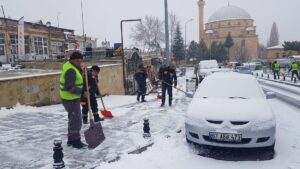 NEVŞEHİR(TRENDHABER9- Nevşehir’in Ürgüp ilçesinde etkili olan kar yağışının ardından cadde, bulvar ve sokakların kardan temizlenmesine yönelik çalışmalar belediye ekiplerince sürdürülüyor.