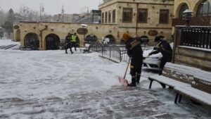 Ürgüp Belediye Başkanı Mehmet Aktürk yaptığı açıklamada, belediyenin iş makinalarının kar temizliğine yönelik çalışmalarını sürdürdüğünü belirterek; “ Gece başlayan kar yağışının ardından belediyemiz, kar temizleme, tuzlama, yol ve kaldırım açma çalışmalarına aralıksız devam etmektedir.” dedi.