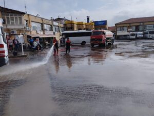 Başkan Aktürk; “ Sabahın erken saatlerinden itibaren dünkü yoğun yağışlardan dolayı oluşan zararları ve hemşehrilerimizin mağduriyetlerini ortadan kaldırmak için çalışıyoruz.
