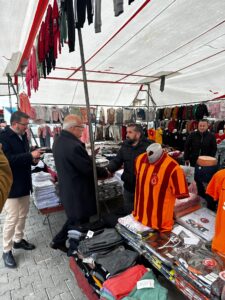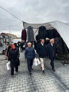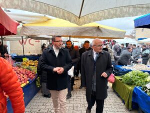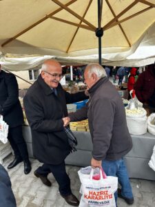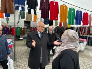 Başkan Adayı Yıldız, kurulan pazarda, esnaf ve vatandaşlarla sohbet ederek talepleri dinledi, seçimlerde destek istedi.