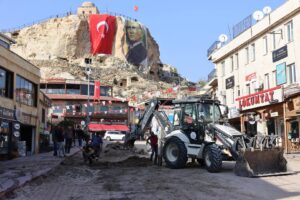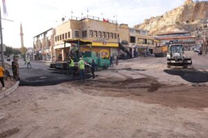 İlçe genelinde vatandaşların ulaşımlarını daha rahat ve modern bir şekilde sağlayabilmeleri için projelerini bir bir hayata geçiren Ürgüp Belediyesi, Cumhuriyet Meydanı etrafındaki yolun altında kalan eski su tüneline bağlı olarak yolda oluşan çökmeleri engellemek için planlanan program dâhilinde sıcak asfalt yol çalışmalarını tamamladı.