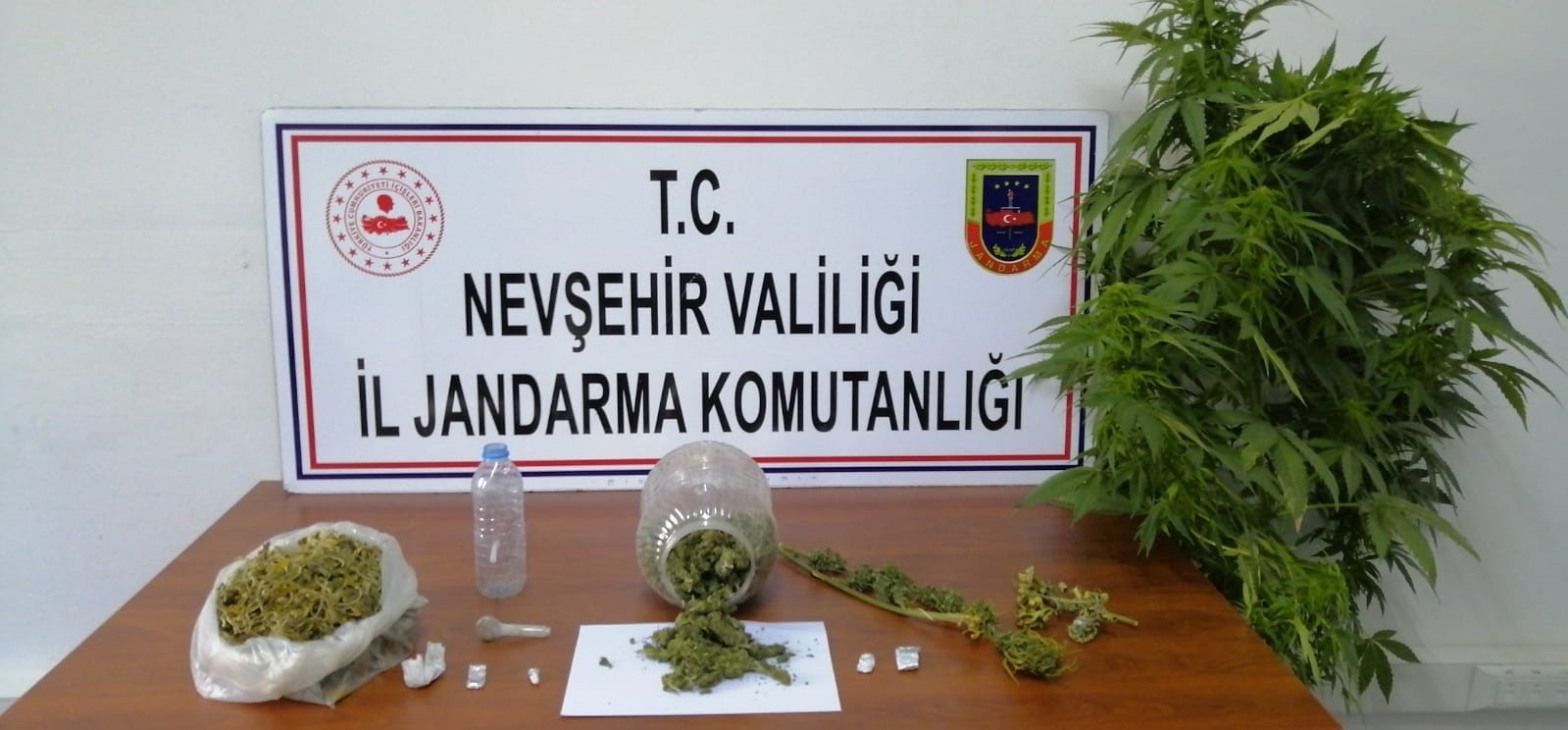 Alınan bilgilere göre, Nevşehir İl Merkez Jandarma Komutanlığı sorumluluk sahasında icra edilen faaliyette, E.Ç isimli şahsın üzerinde ve evinde yapılan aramada 1,31 gram metamfetamin, 460,08 gram kubar esrar isimli uyuşturucu ve uyarıcı madde, 1 kök kenevir bitkisi ve 2 adet uyuşturucu madde kullanma düzeneği ele geçirildi.