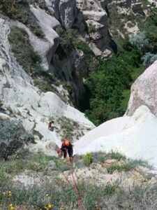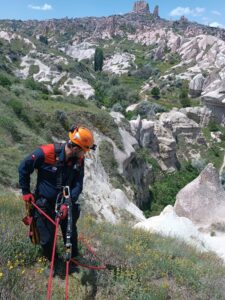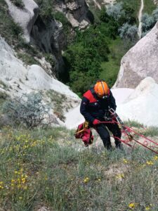 Uçhisar Beldesi, Güvercinlik Vadisi mevkiinde bir köpeğin vadide mahsur kaldığı yönünde yapılan ihbarı değerlendiren Nevşehir AFAD ekipleri, vadi içlerindeki oldukça engebeli bir arazide,  yukarı çıkamayan ve mahsur kalan köpeği yaptıkları çalışma ile kurtararak sahibine teslim etti.