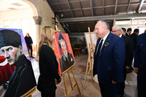 Vali Fidan, Kapadokya Kültür ve Sanat Merkezi’nde Şehit Demet Sezen Güzel Sanatlar Lisesi öğretmen ve öğrencilerinin hazırladığı Atatürk resimlerinden oluşan sergiyi gezdi.