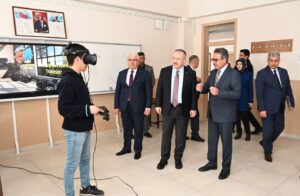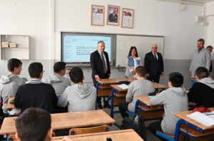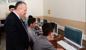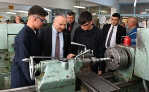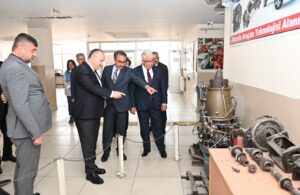 Bilişim Teknolojileri, Elektrik Elektronik Teknolojileri, Mobilya ve İç Mekan Tasarımı, Metal Teknolojisi, Makine Teknolojisi ve Motorlu Araçlar Teknolojisi alanlarında eğitim gören öğrencileri ziyaret ederek öğrencilere başarılar dileyen Vali Ali Fidan ve Milli Eğitim Müdürü Yazıcı, okul öğretmenleriyle de görüşerek, sürdürülen eğitim ile ilgili bilgiler aldılar.