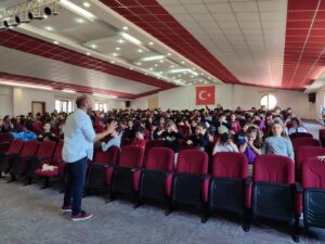 28 Mart 2024 Perşembe günü gerçekleştirilen söyleşi programına Altınyıldızlı 2. ve 3. Sınıf öğrencileri katılım sağladı. Eserleri hakkında bilgi veren yazar, öğrencilerinde katılımıyla bilgi ve eğlence dolu bir söyleşi gerçekleştirdi.