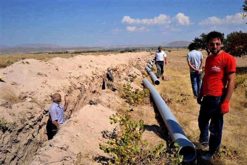 YAZIHÜYÜK BELDESİNDE DUALARLA BAŞLAYAN SU ŞEBEKESİ ÇALIŞMALARI DUALARLA TAMAMLANDI