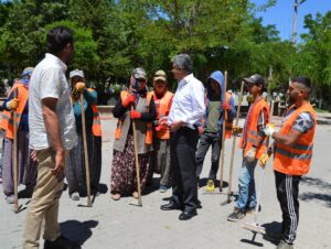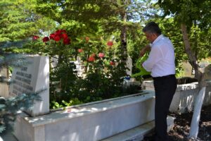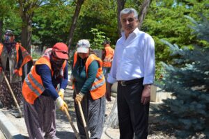Yazıhüyük Belediye Başkanı Cengiz Çavdar, mezarlık içerisinde temizlik çalışmalarına katılan personele çalışmalarından dolayı teşekkür etti.