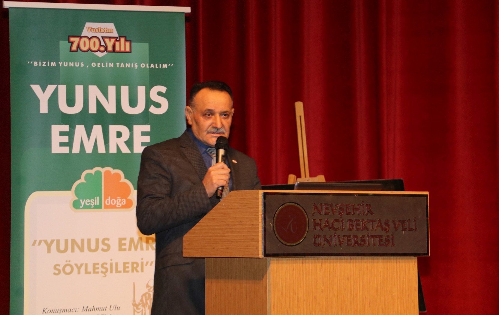 Daha sonra , Aşk Mabedinin İmamı, Aşka Ağlayan Derviş Yunus Emre, Aşka Ağlayan Veli – Hacı Bektaşı Veli, Hacı Bayram-ı Veli, Somuncu Baba gibi eserleri ile tanınan ve son olarak Somuncu Baba isimli eseri sinema filmi olarak da beyazperdeye aktarılan Mahmut Ulu,Moğol Saldırıları altındaki Anadolu’nun yeniden o aydınlık günlerine dönmesine hayatı ve düşünceleri ile ışık olan Yunus Emre’nin hayatından çeşitli bölümleri etkinliğe katılanlarla paylaştı.