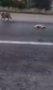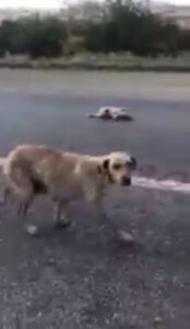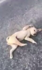 Sosyal medyada yayımlanan bir görüntüde  aracı ile karayolunda  gitmekte olan bir kişi, yolda yatar vaziyette bir yavru köpeği gördü. Annesi olan köpeğin çaresizlikle köpeğine yardım yapmaya çalıştığını gören araç sürücüsü, yavru köpeği yavrusu ile birlikte aracına alarak bir hayvan kliniğine götürdü.