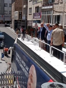 Özdağ, parti otobüsünün üzerinde halka hitap etti.