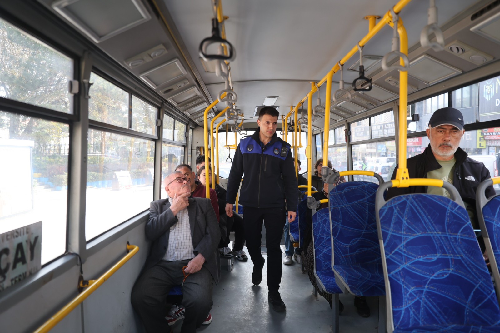 Araçlarda bulunan sesli ve görüntü kaydeden kameralardan periyodik olarak düzenlenen denetimlere ilave olarak sahada denetimler gerçekleştirildi. Denetimlerde, Zabıta ekipleri tarafından otobüs içerisinde hijyen kontrolleri yapıldı.