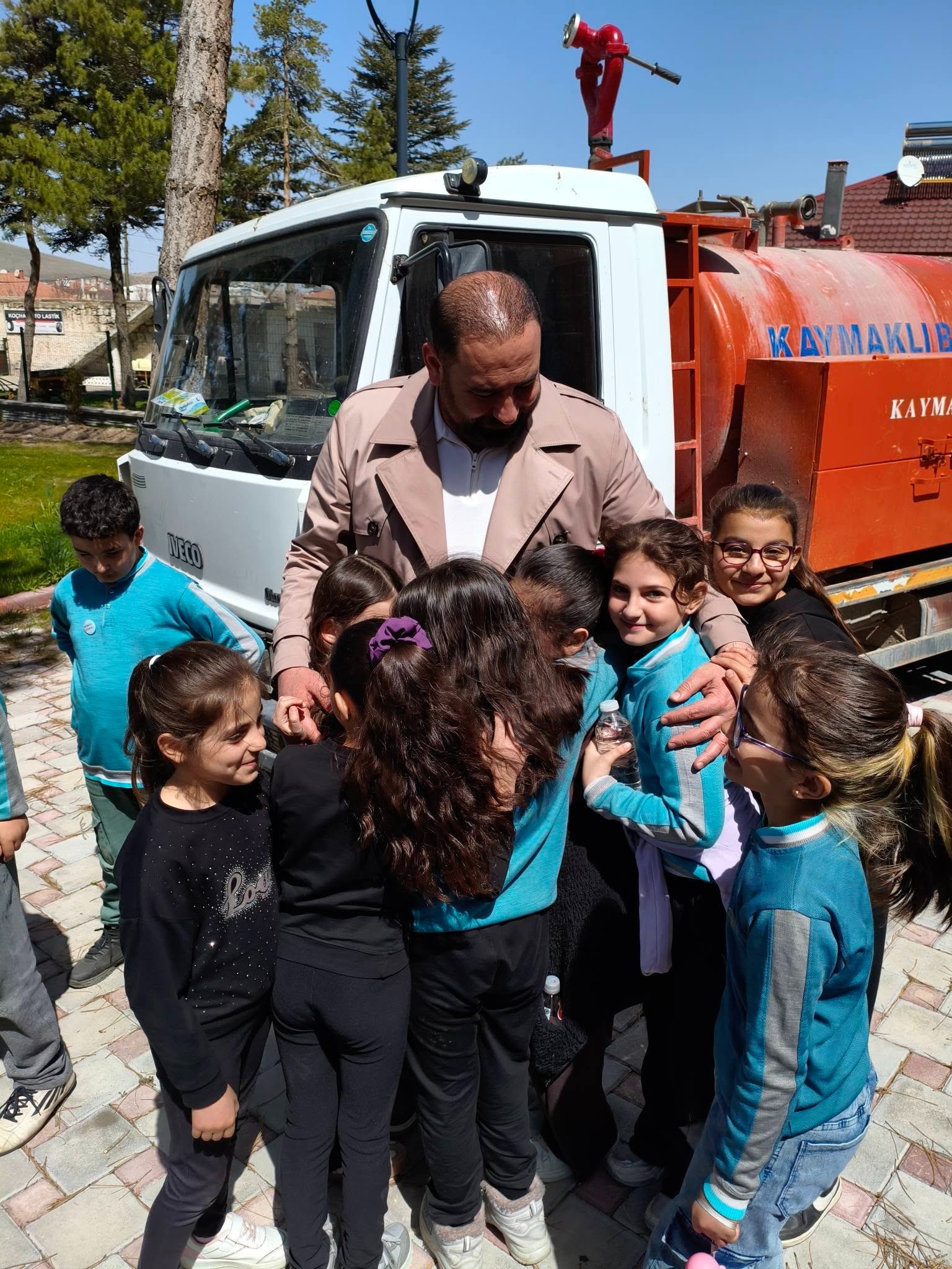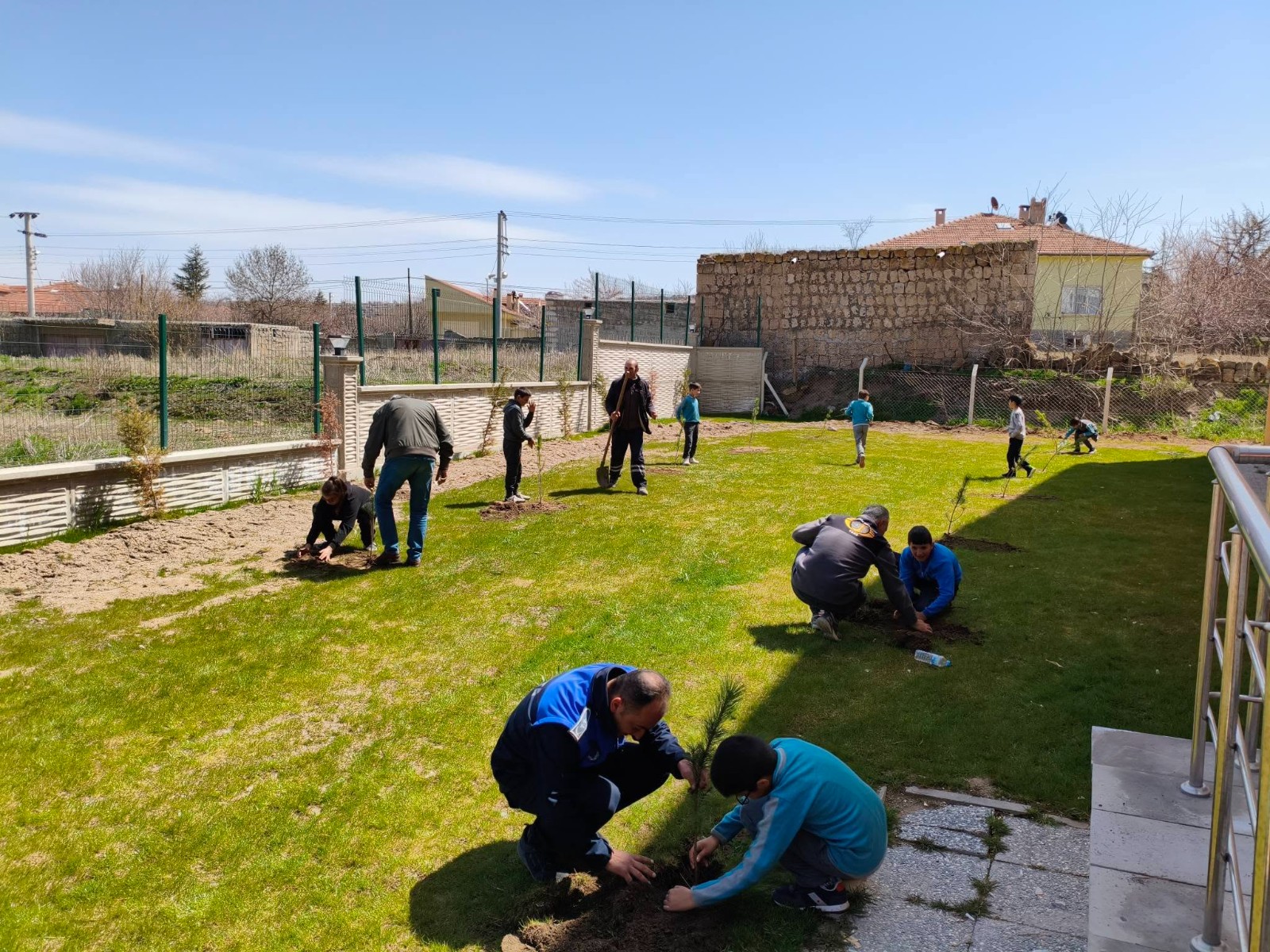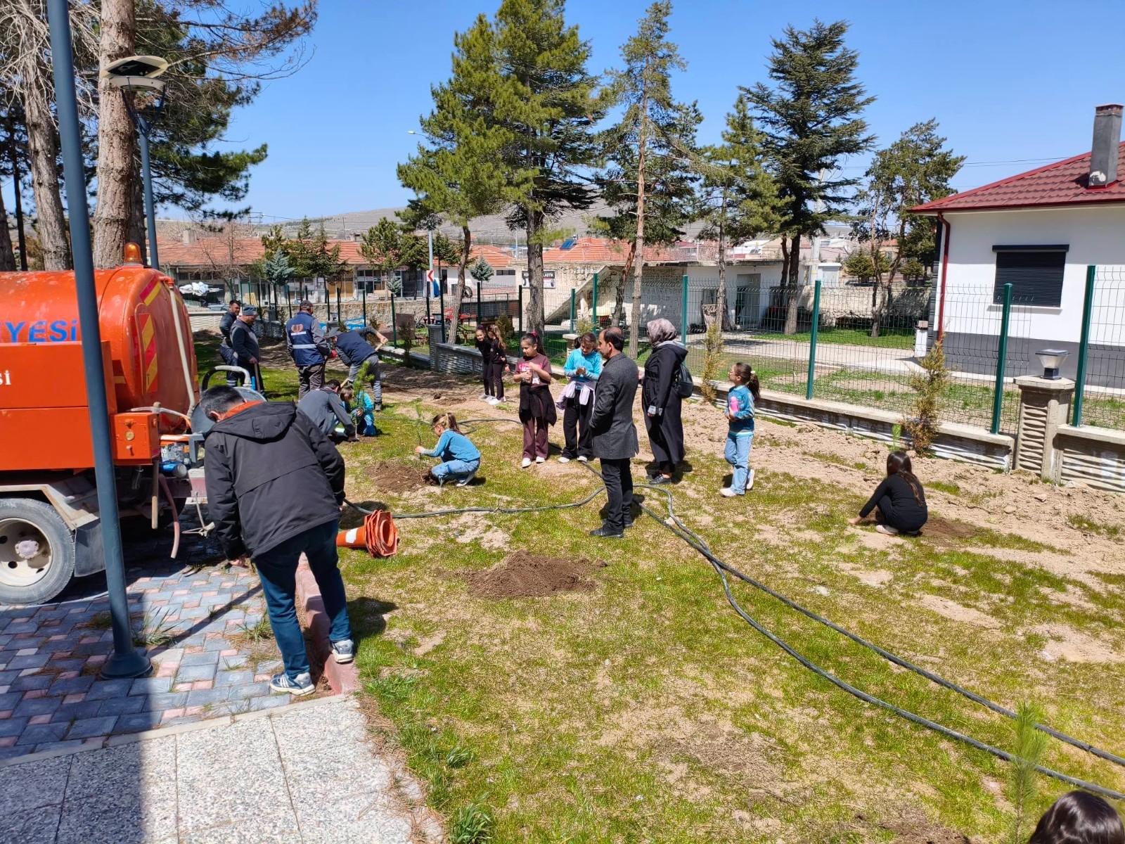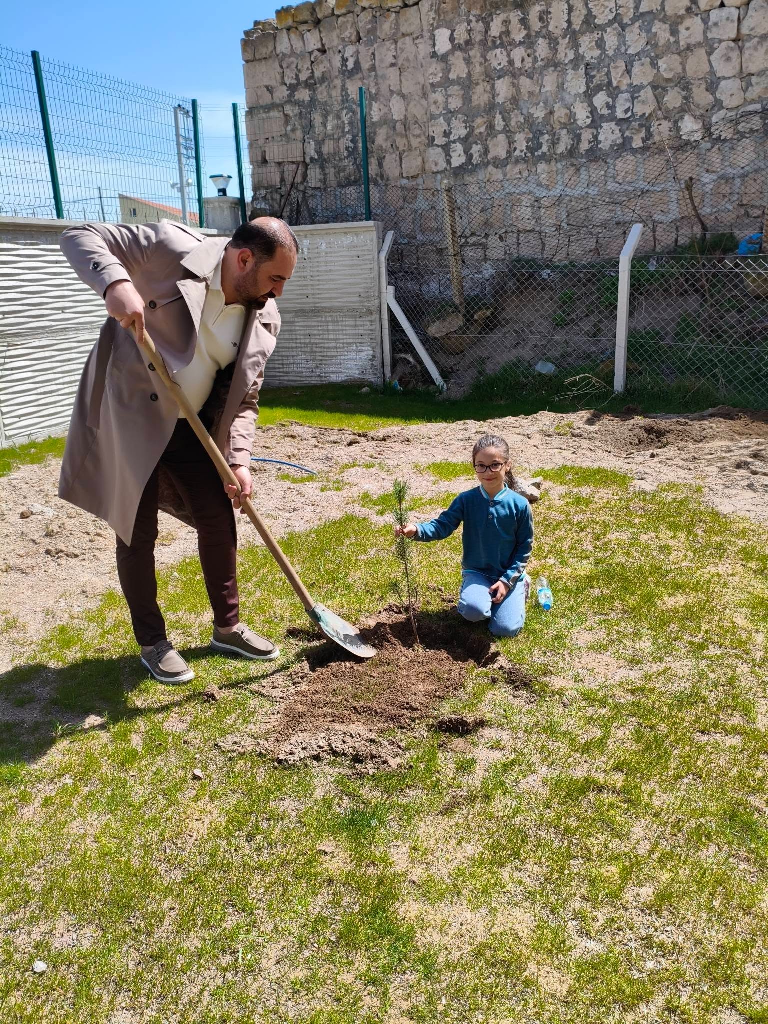 NEVŞEHİR(TRENDHABER)-Kaymaklı İlkokulu 4. Sınıf öğrencileri, Devlet Bahçeli Spor Kompleksi alanına fidan dikimi yaptı.