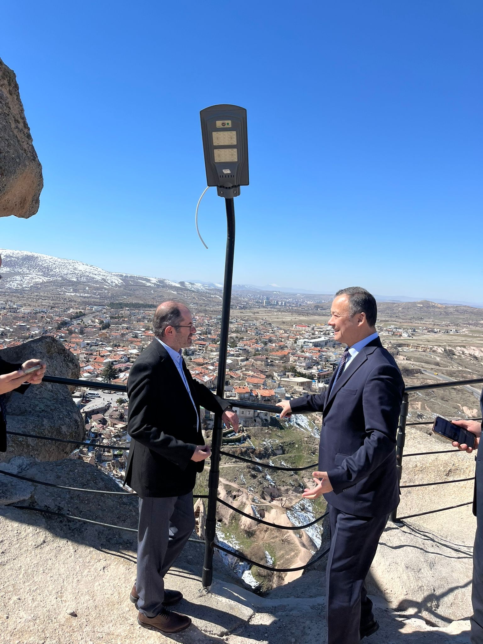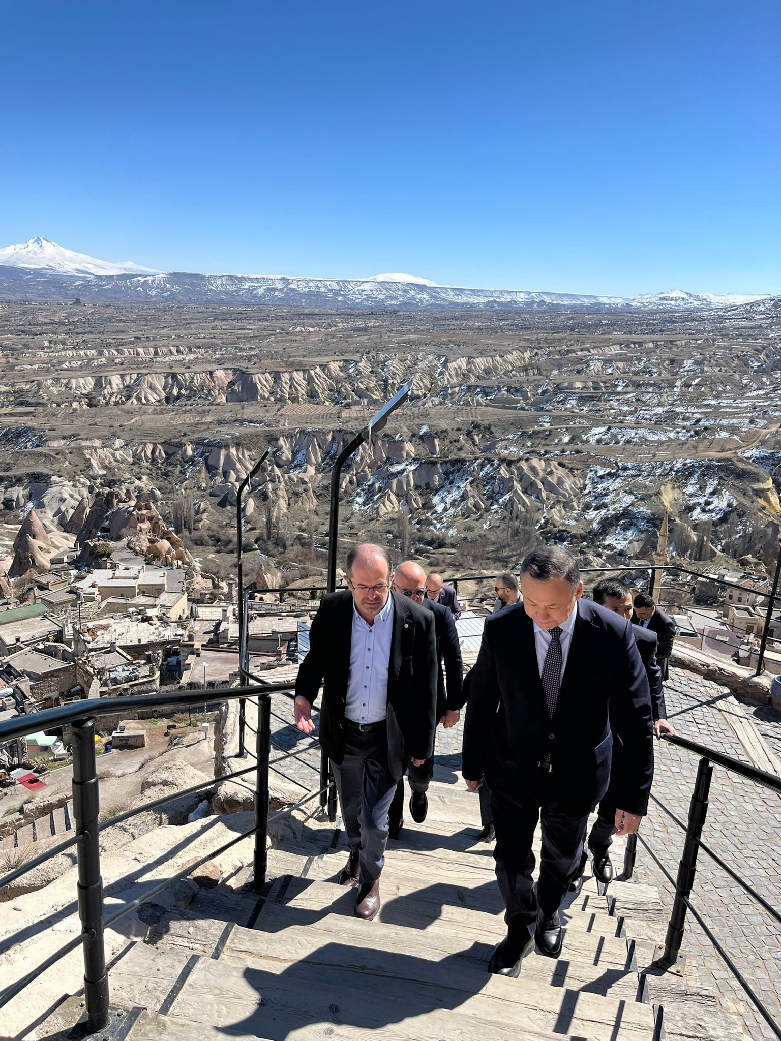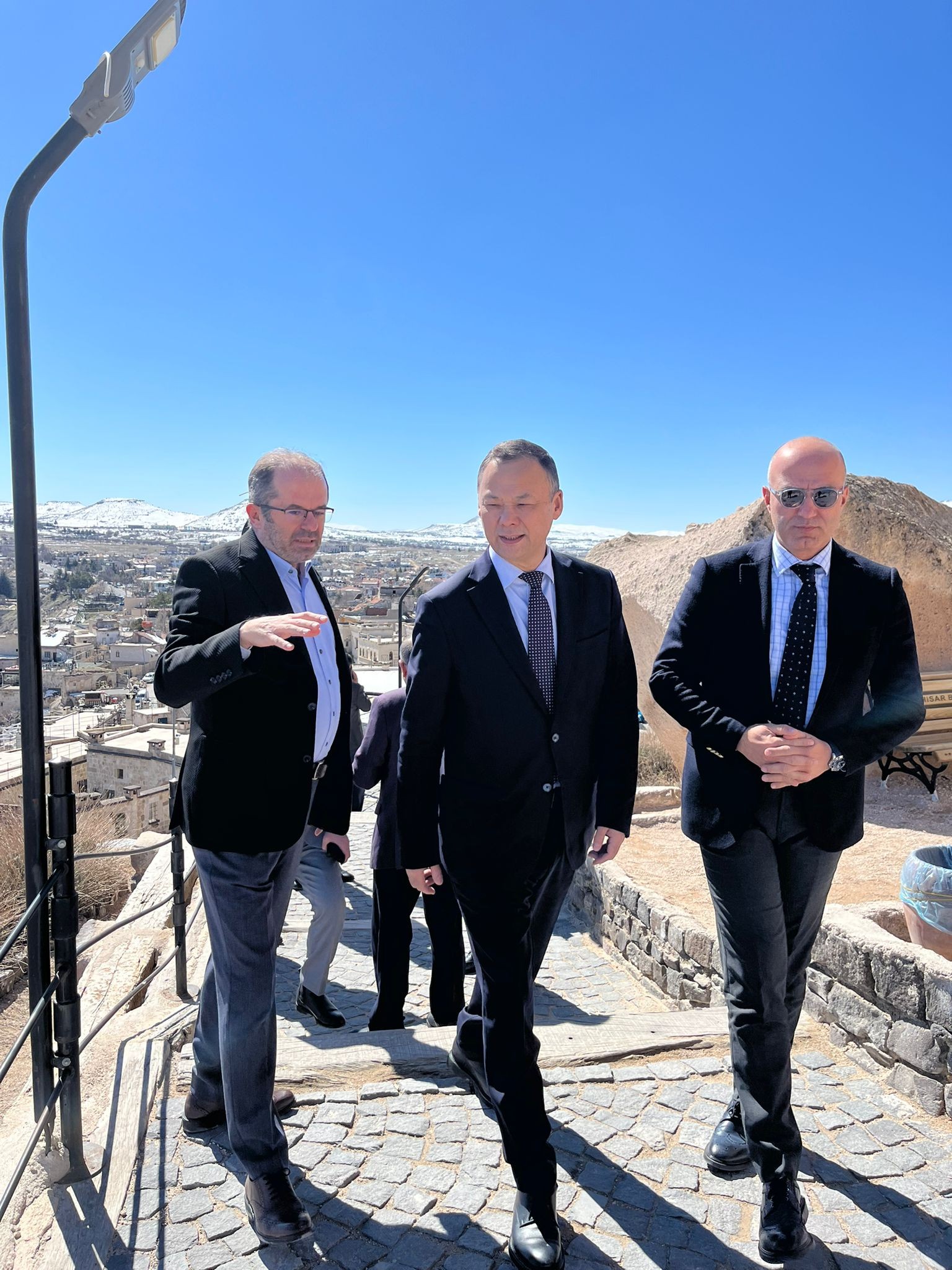 Uçhisar Belediye Başkanı Abdullah Çamcı’nın da eşlik ettiği ziyarette Büyükelçi Kazakbaev, Kapadokya’nın en yüksek noktalarından biri olan Uçhisar Kalesi’ni gezerek bölgenin tarihi ve doğal güzellikleri hakkında bilgi aldı.
