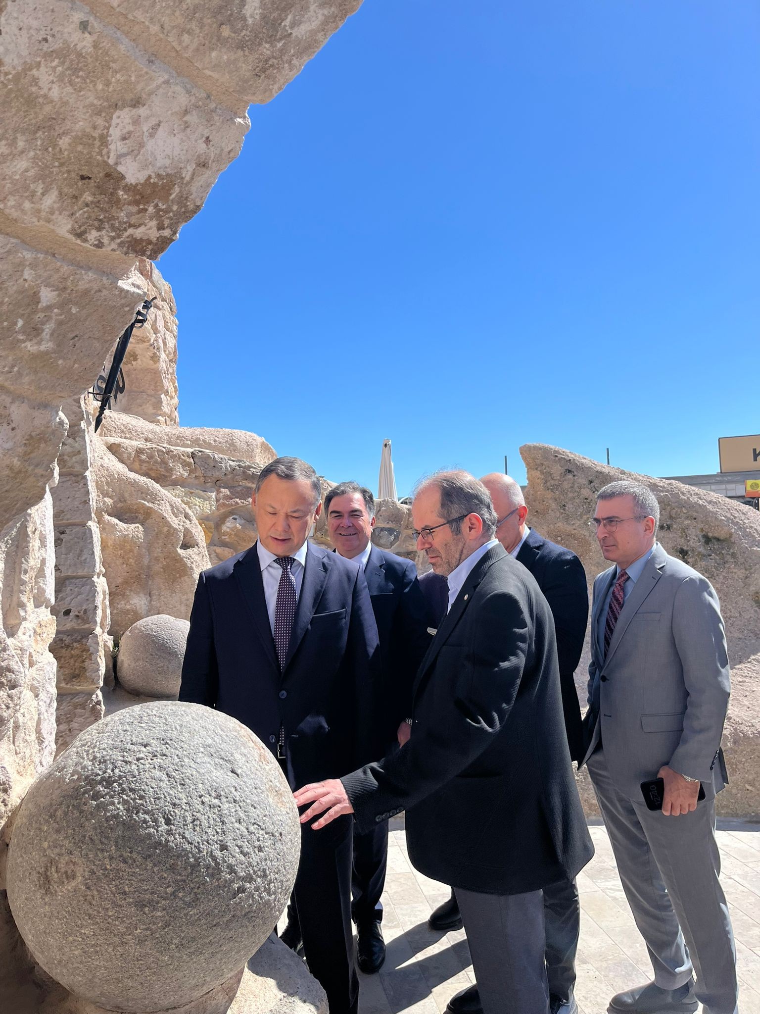 Ziyaret kapsamında Uçhisar Kalesi’nin panoramik manzarasını da izleyen Kazakbaev, Kapadokya’nın doğal ve tarihi zenginliğinin etkileyici olduğunu ifade etti.