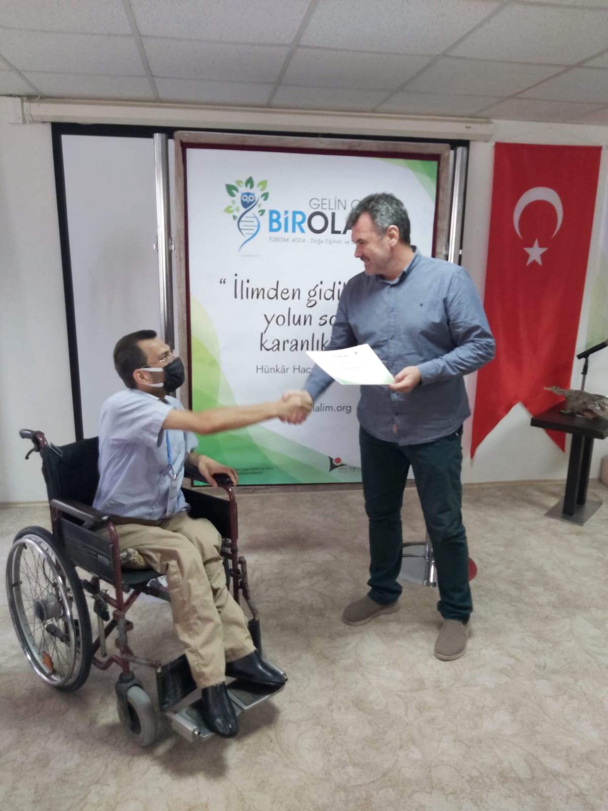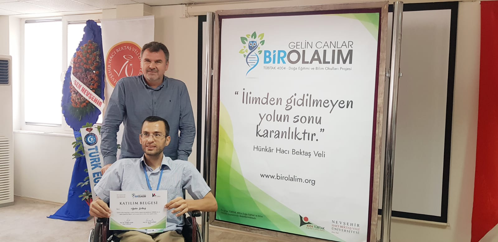 NEVŞEHİR(TRENDHABER)- TÜBİTAK 4004 Doğa Eğitimi ve Bilim Okulları Çağrısı kapsamında desteklenen “Gelin Canlar Bir Olalım” projesi Nevşehir Hacı Bektaş Veli Üniversitesi’nde gerçekleştirildi. Proje katılımcısı 40 öğretmen arasında bedensel engelli Aydın Sellioğ da yer aldı. Mersin’in Tarsus ilçesinde 12 yıldır Fen Bilimleri Öğretmeni olarak görev yapmakta öğretmen engelli olmanın engel olmadığını bir kez daha ispatladı.