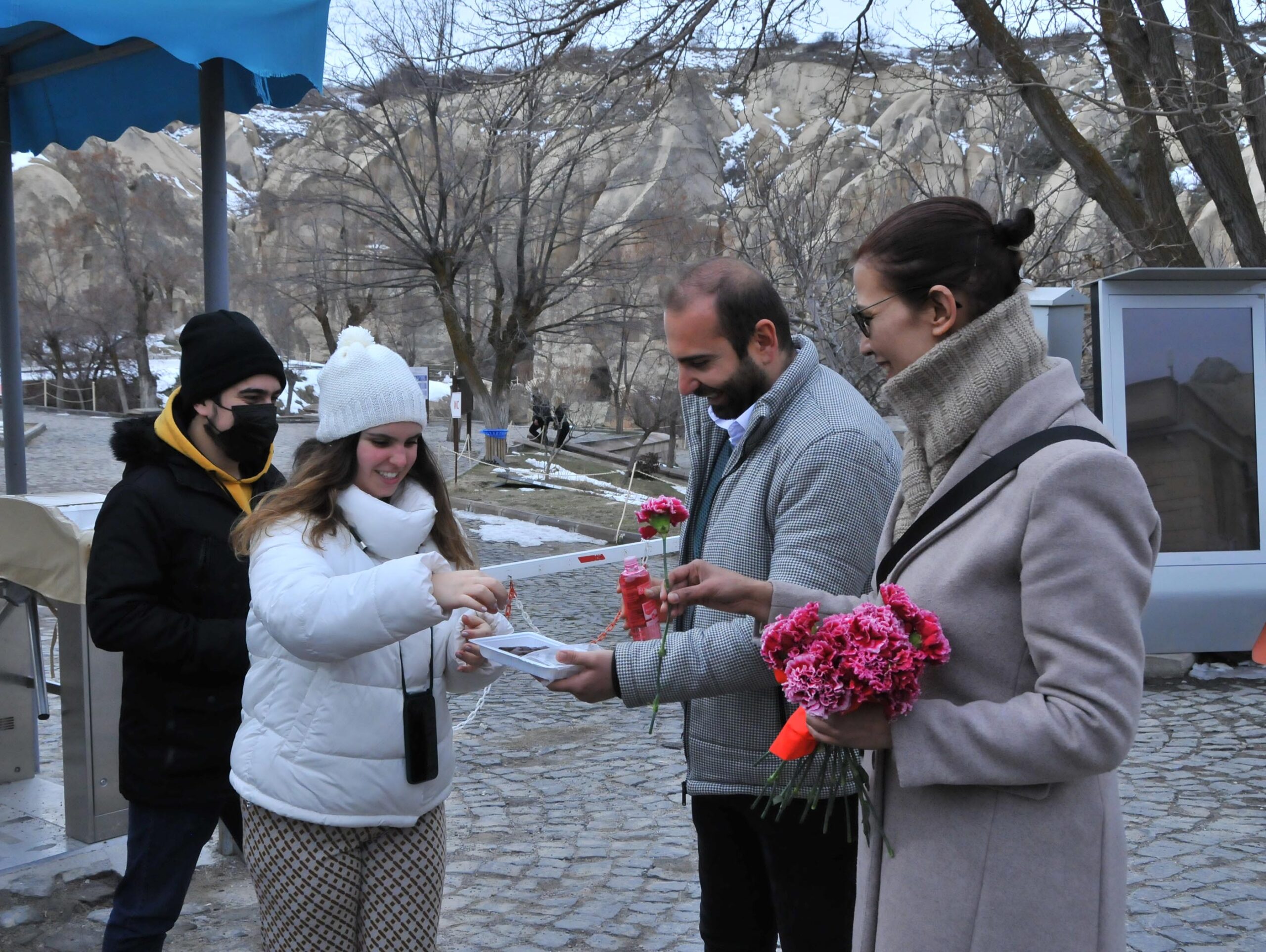NEVŞEHİR(TREND HABER))- 21 ŞUBAT Dünya Rehberler Günü nedeniyle  Nevşehir Rehberler Odası tarafından,Kapadokya bölgesini ziyaret eden yerli ve yabancı turistlerle profesyonel turist rehberlerine  karanfil dağıtıldı.