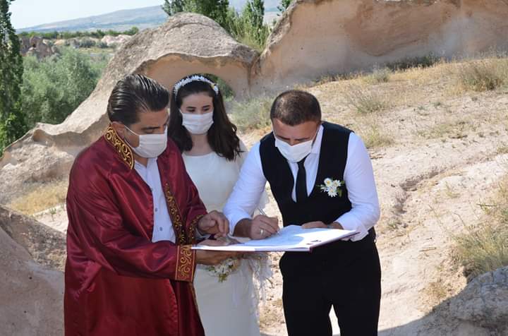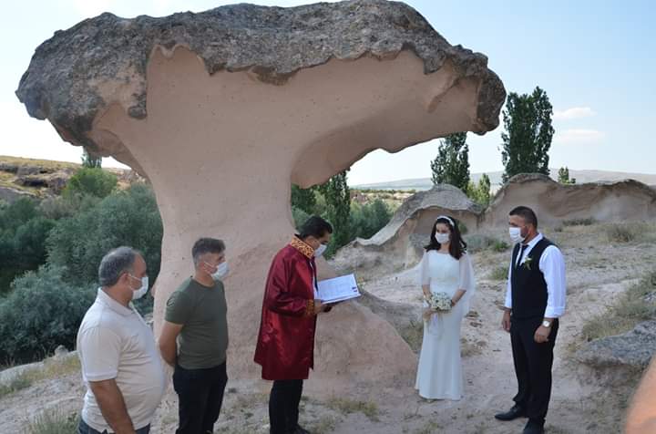 NEVŞEHİR(TREND HABER)-NEVŞEHİR’in Gülşehir ilçesinde Ören yerinde bulunan Mantarkaya’da Nikah kıyıldı.