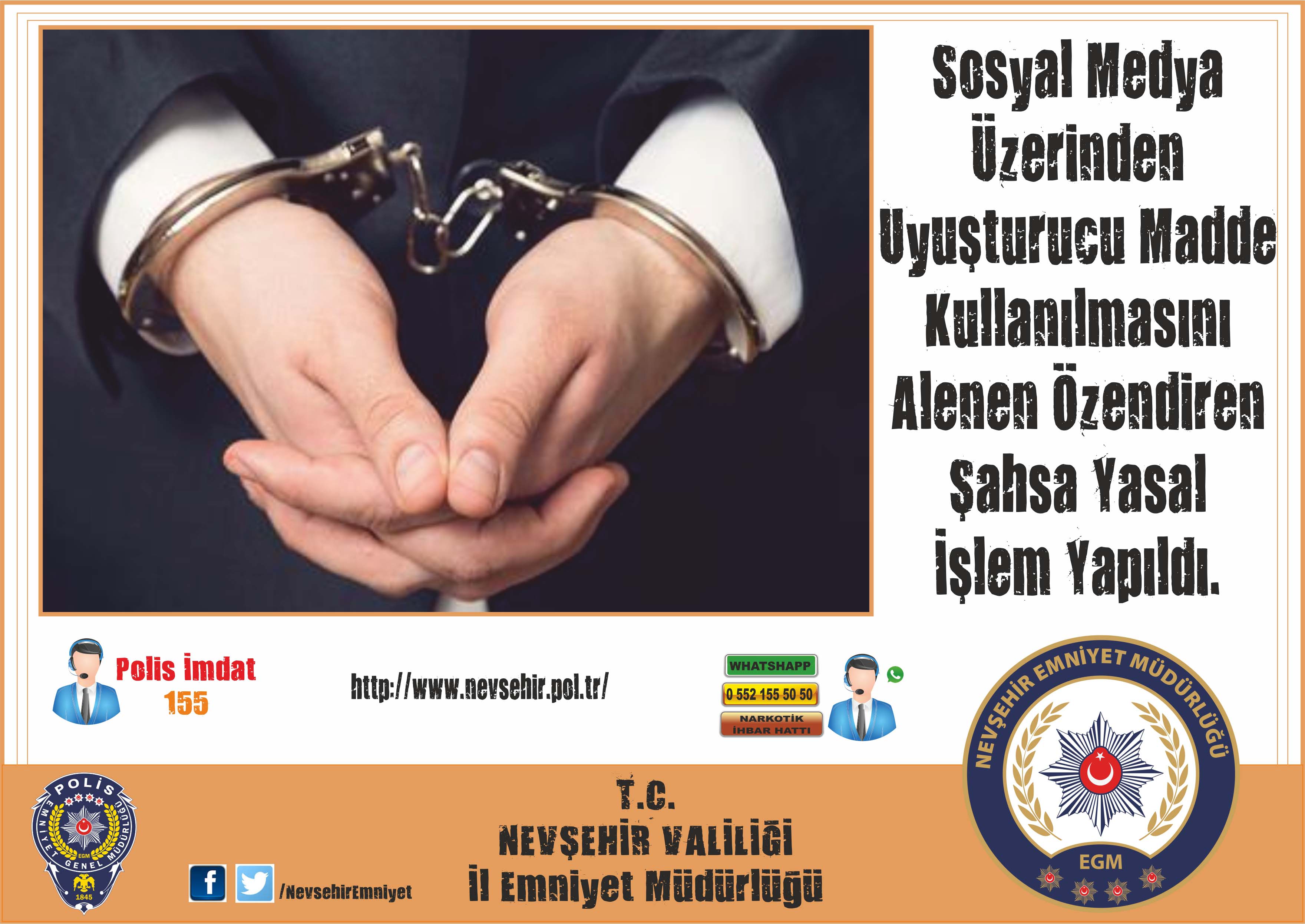 Sosyal medyada Uyuşturucuya özendiren bir kişi yasal işlem yapıldı « nevsehir haber