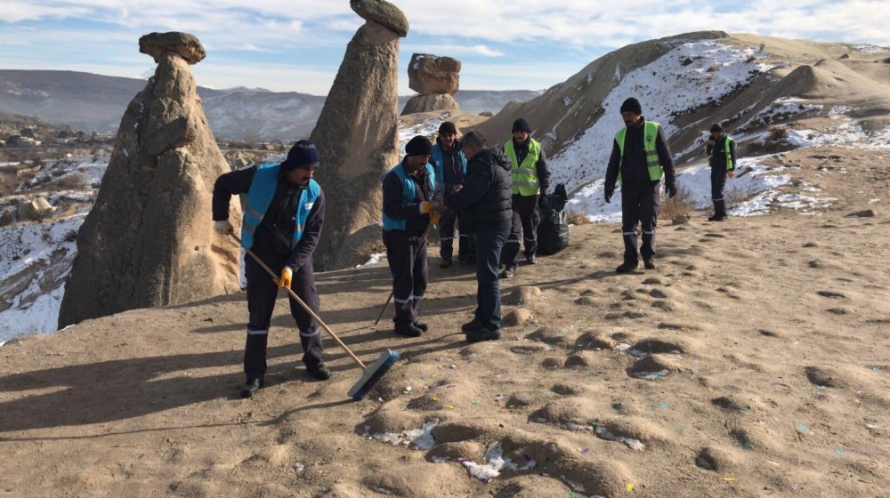 Bölgenin önemli uğrak noktalarından biri olan üç güzeller Kapadokyayay gelen yerli ve yabancı turistlerin uğrak yerlerinin başında geliyor. Özellikle yeni evlenencek olan çiftler burda hatıra fotoğrafı çektiriyorlar muhtemelen yine bir düğün fotoğraf çekimindi gelin ve damat’a konfeti  atılmış ve yer temizlenmemişti. Yakup Dinler ise bunu cep telefonuyla görüntüleyip sosyal medya hesabından paylaştı. Bunun  özerine Ürgüp Belediyesi Temizlik işleri üç güzellerdeki bu çirkin görüntüyü temizlediler.