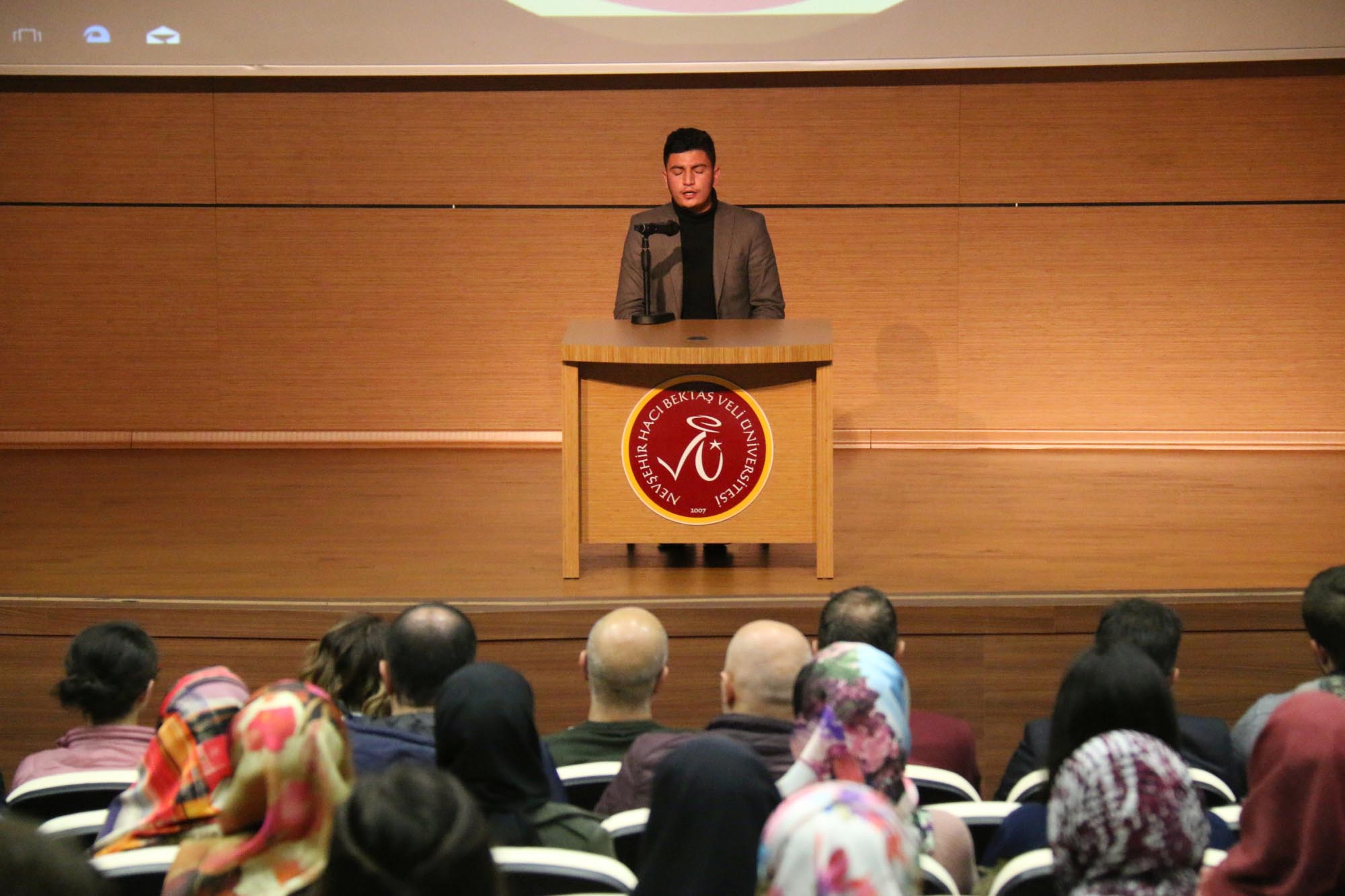 Nevşehir Hacı Bektaş Veli Üniversitesi bünyesinde faaliyet gösteren Gençlik Platformu Kulübü, Girişimcilik Kulübü, Sosyal Sorumluluk Kulübü, Yeniler Kulübü ve Sanat Kulübü tarafından ortaklaşa organize edilen “II. Abdulhümid Han’ı Anlamak” konulu konferans Kültür ve Kongre Merkezinde gerçekleştirildi. Rektör Yardımcısı Prof. Dr. Fatma Karipcin, Hacıbektaş MYO Müdürü Öğr. Gör. Ahmet Alparslan Eraslan, akademik ve idari personel ile öğrenciler katıldığı konferans; saygı duruşu, İstiklal Marşı’nın okunması ve Kuran-ı Kerim tilavetinin ardından sahne alan Nevşehir Belediyesi Mehteran Takımının gösteriyle başladı.