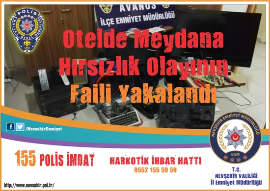 Avanos’ta bir otelde meydana gelen hırsızlık faili yakalandı.