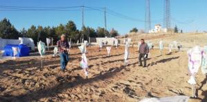 Diktiği fidanların soğuk ve don tehlikesine karşı korumak amacıyla tamamına çuval geçirerek koruma önlemi alan Koçak “ Meyve fidanlarına çocuklarım gibi bakarım ve çok severim. Taze fidanların don ve soğuka karşı dayanıklılıklarını sürdürebilmeleri için tamamına çuval geçirdim. İnşallah faydası olurda fidanlarım soğuktan etkilenmez” dedi.